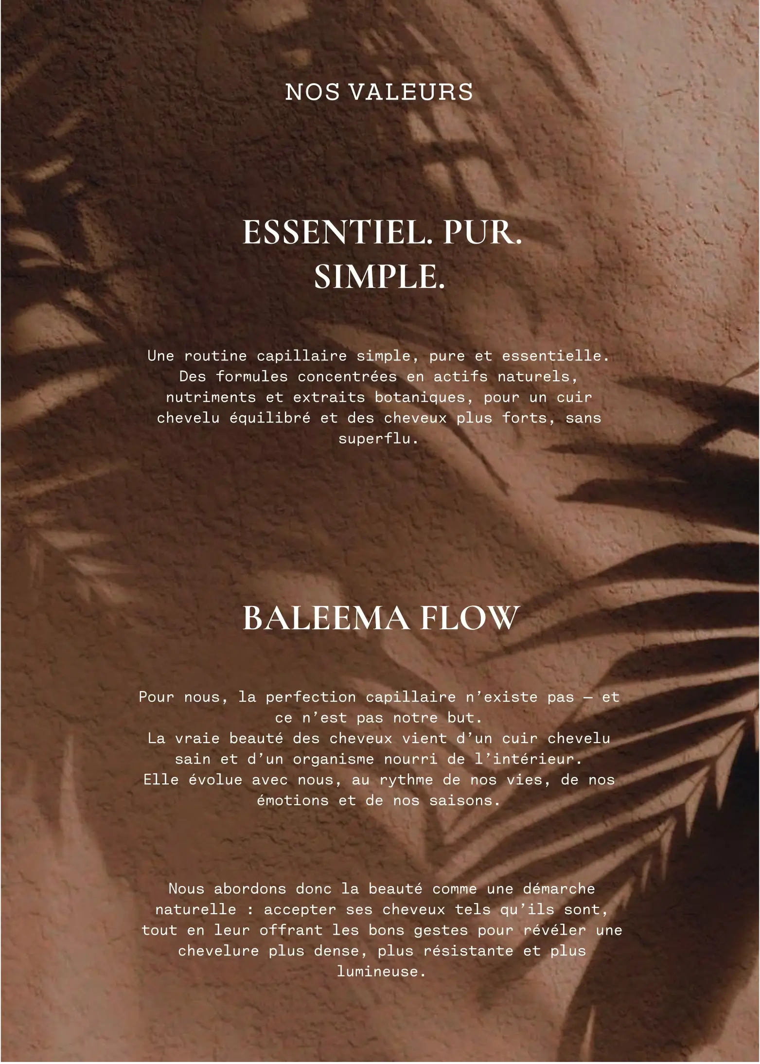 Avec Baleema, chaque geste devient un rituel d’expertise, pensé pour redonner à vos cheveux force, densité et éclat durable.