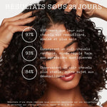Renforce la fibre capillaire, stimule la repousse et limite la casse. Les cheveux retrouvent vigueur, densité et résistance.