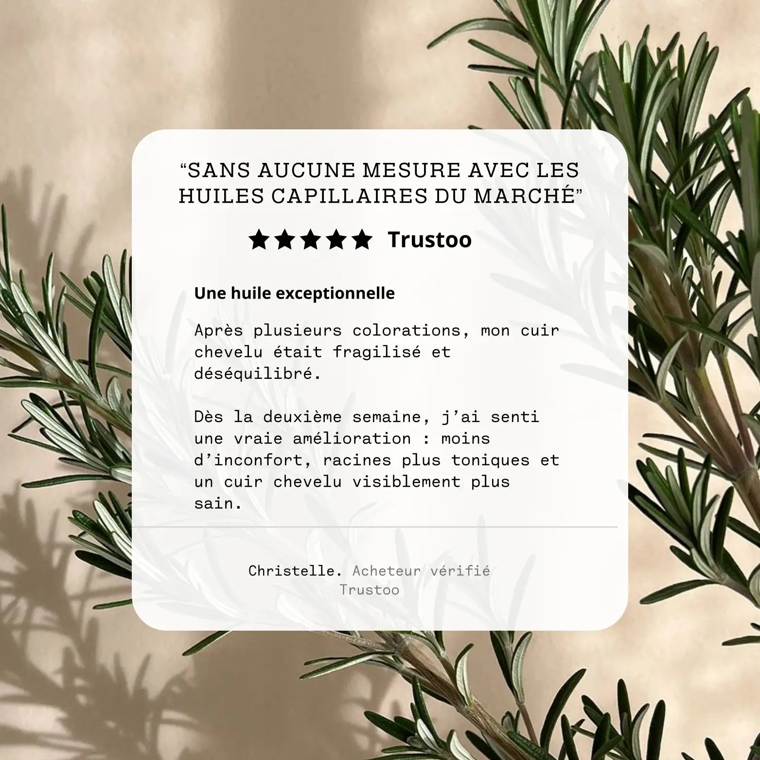 10 à 12 gouttes sur le cuir chevelu (massez 2 à 3 minutes)